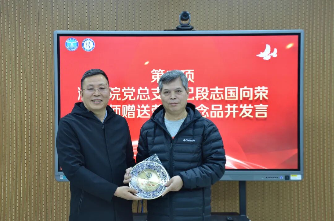 党总支书记段志国为初炳东老师颁发光荣退休纪念盘,这不仅是色情动漫对荣休教师执教生涯的致敬,更是对深耕法学教育、培育栋梁的铭记。