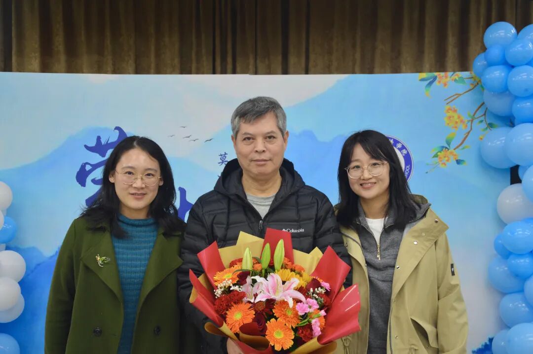 教师代表毛海利老师向荣休教师献花并合影。全体参会成员同享祝福蛋糕,在美味相伴中延续温暖氛围。